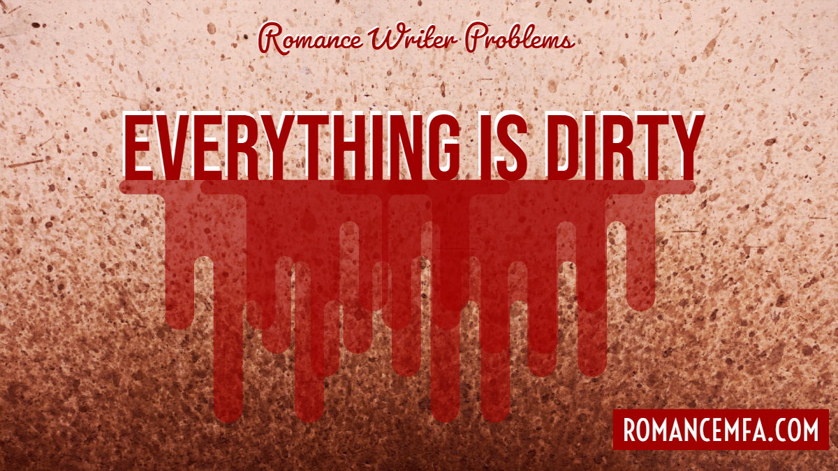 This time we’re looking at the Romance Writer Problem of “Everything is Dirty.” Do we write smutty stories because we have smutty thoughts? Or do we have smutty thoughts because we write smutty stories? Chicken or egg, romance authors see potential sexy stories wherever they go.